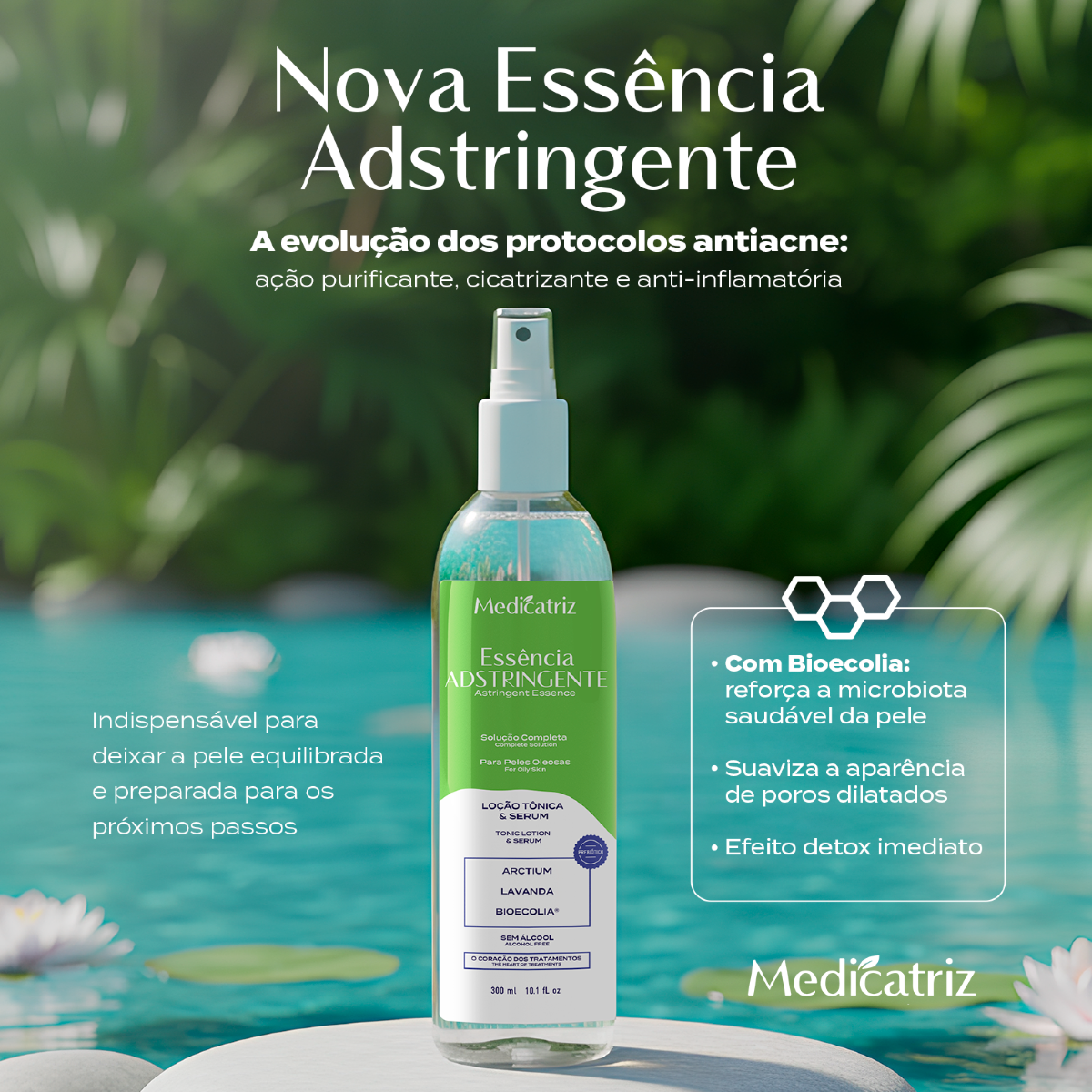 Normalizadora: Normaliza e equilibra a pele contribuindo para saúde e equilíbrio.