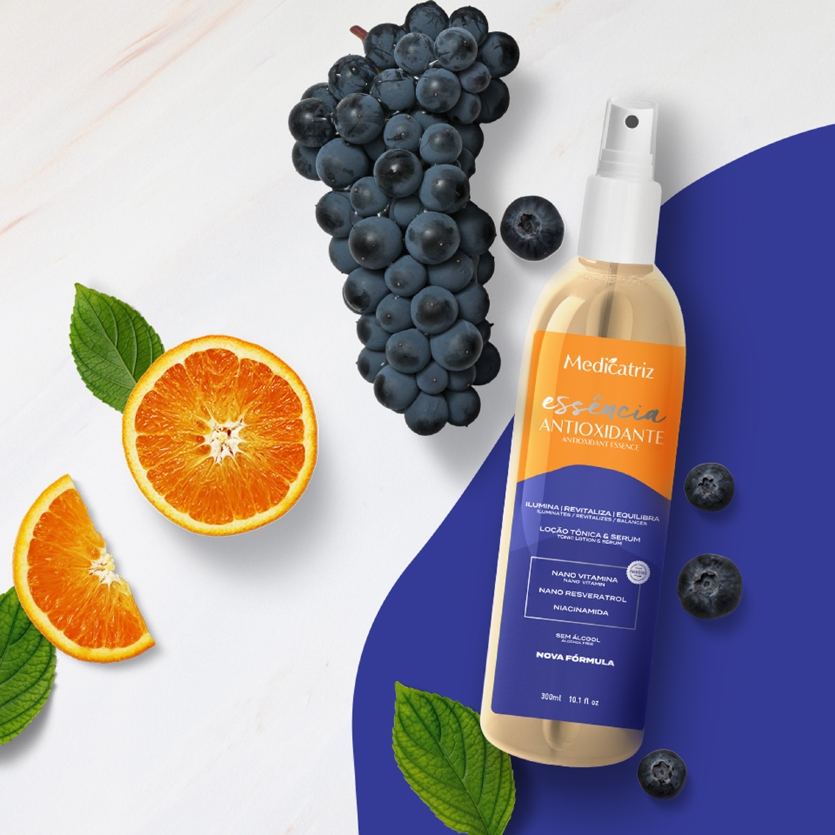 Vitamina C Nano: Poderoso antioxidante e antiestresse cutâneo. Protege a pele contra as radiações fototóxicas, previne e reverte danos causados pelos radicais livres.